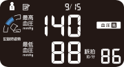當血壓測量期間偵測到超過/低於平均脈搏數值 ±25%,將會出現不規則脈搏的標示。
