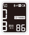 當血壓測量期間偵測到超過/低於平均脈搏數值 ±25%,將會出現不規則脈搏的標示。