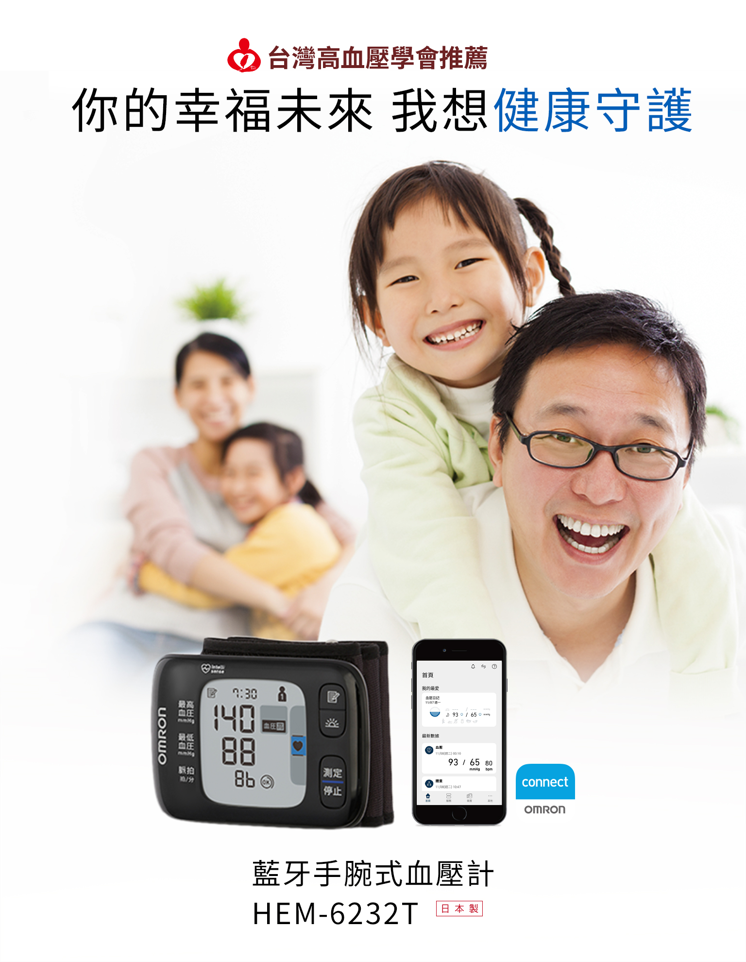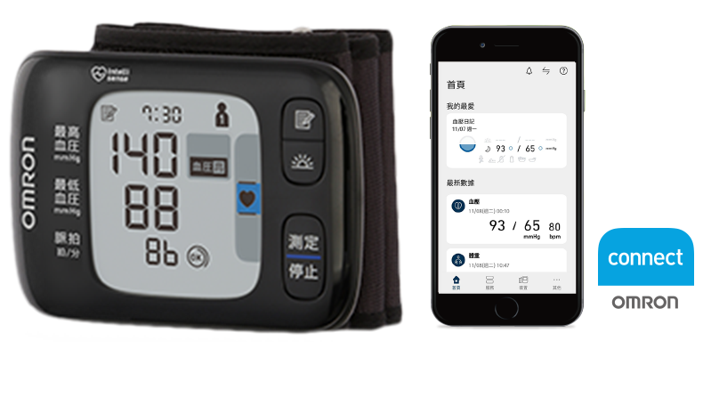 產品具有藍牙傳輸功能,將量測數據上傳至「OMRON connect」。輕鬆查看血壓變化,省去紀錄血壓數值的麻煩,更方便於看診時提供給醫師判斷。