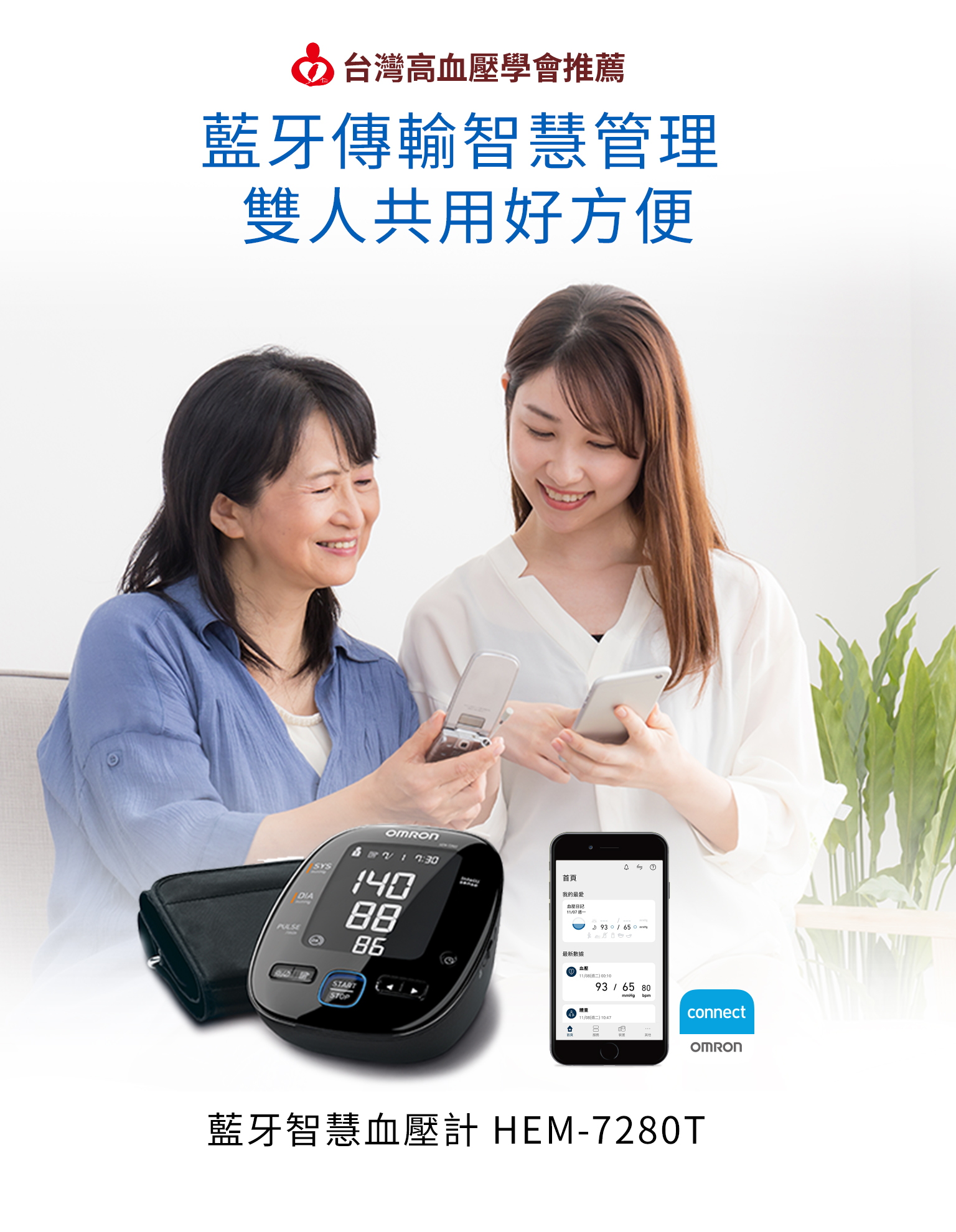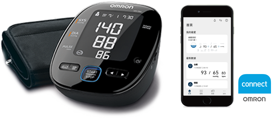 產品具有藍牙傳輸功能,將量測數據上傳至「OMRON connect」。輕鬆查看血壓變化,省去紀錄血壓數值的麻煩,更方便於看診時提供給醫師判斷。