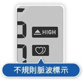 脈搏與心律息息相關,不規則脈波可能是心律異常的徵象。 當血壓測量期間偵測到超過/低於平均脈搏數值 ±25%,將會出現不規則脈搏的標示。 若持續顯示不規則脈波的標示,請您務必諮詢醫師,並遵循醫師指示進行治療。