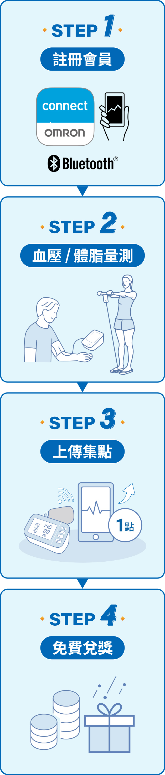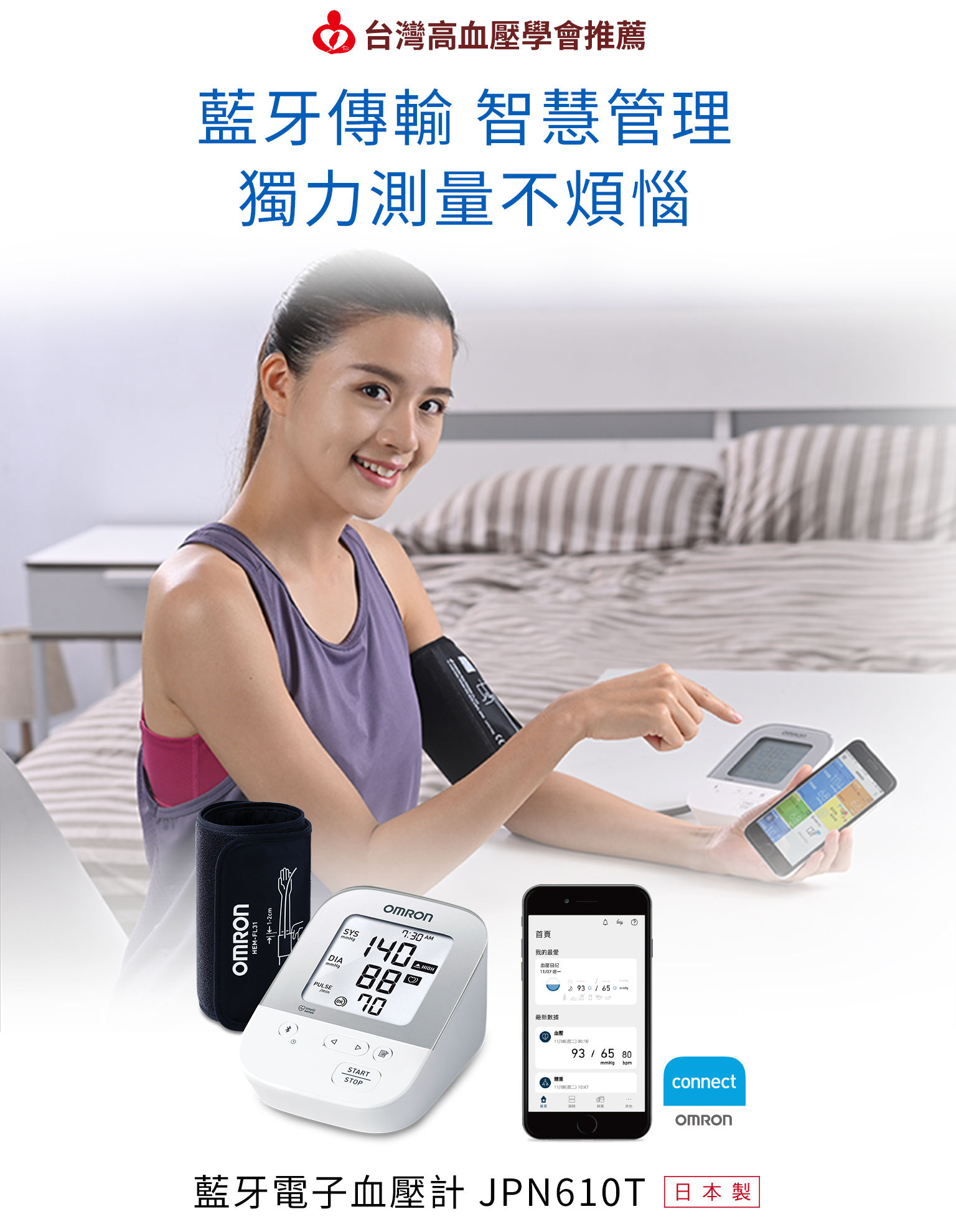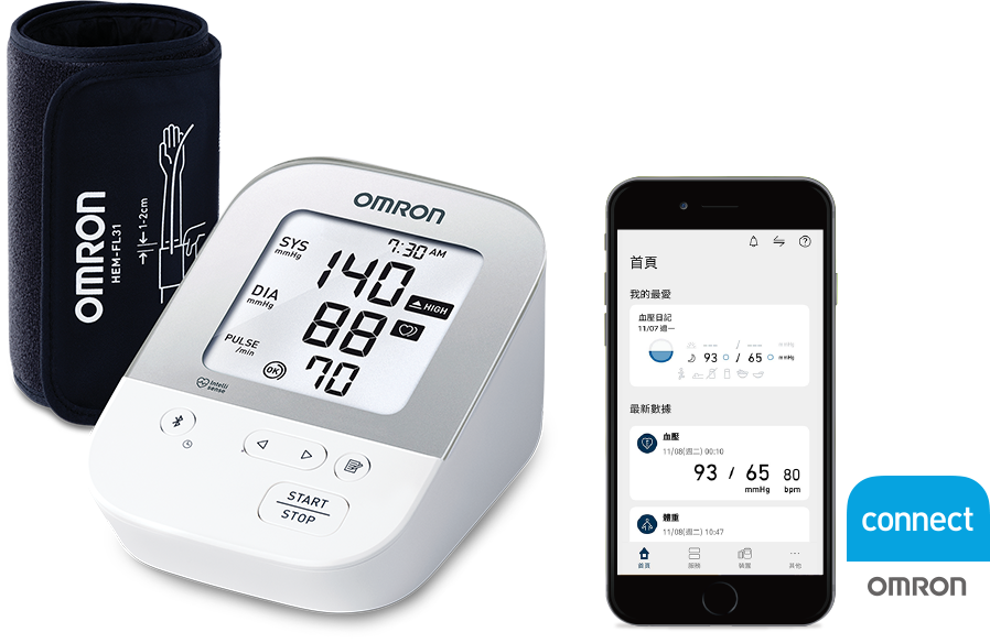 產品具有藍牙傳輸功能,將量測數據上傳至「OMRON connect」。輕鬆查看血壓變化,省去紀錄血壓數值的麻煩,更方便於看診時提供給醫師判斷。